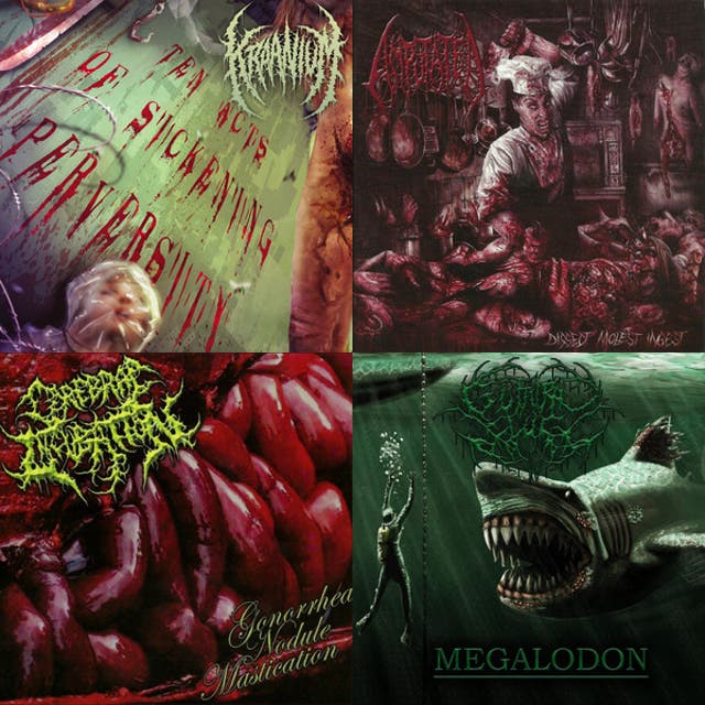 Devourment’s Molesting the Decapitated (1999) became the genre’s Rosetta Stone: ultra‑low tuning, caveman‑simple but irresistibly heavy slams, and subterranean vocals. Through the 2000s, a global network formed around specialty labels and distros (e.g., Sevared, Comatose, Unique Leader) and tape‑trading/early web forums. Japan’s Vomit Remnants, Russia’s Abominable Putridity and Katalepsy, Italy’s Vulvectomy, Norway’s Kraanium, and U.S. groups like Cephalotripsy, Pathology, and Guttural Secrete helped define regional strains while keeping the core slam ethos intact.