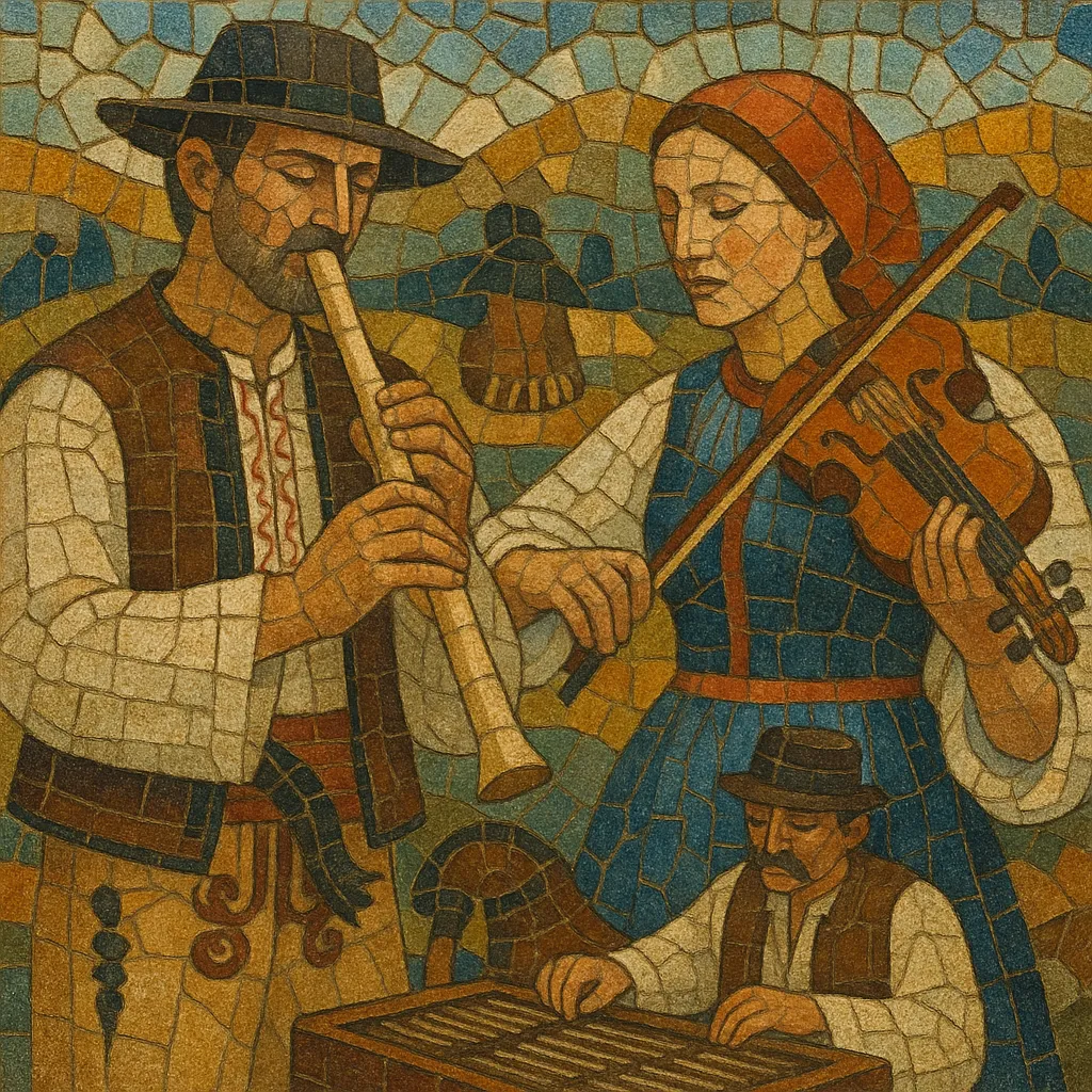Slovak folk is the traditional music of Slovakia, shaped by pastoral life in the Carpathian mountains and by close contact with neighboring Central and Eastern European cultures. It features distinctive shepherd instruments like the fujara (a long overtone flute) and the koncovka (an end-blown overtone flute), village string bands with fiddles and cimbalom, bagpipes (gajdy), and rich regional vocal styles.