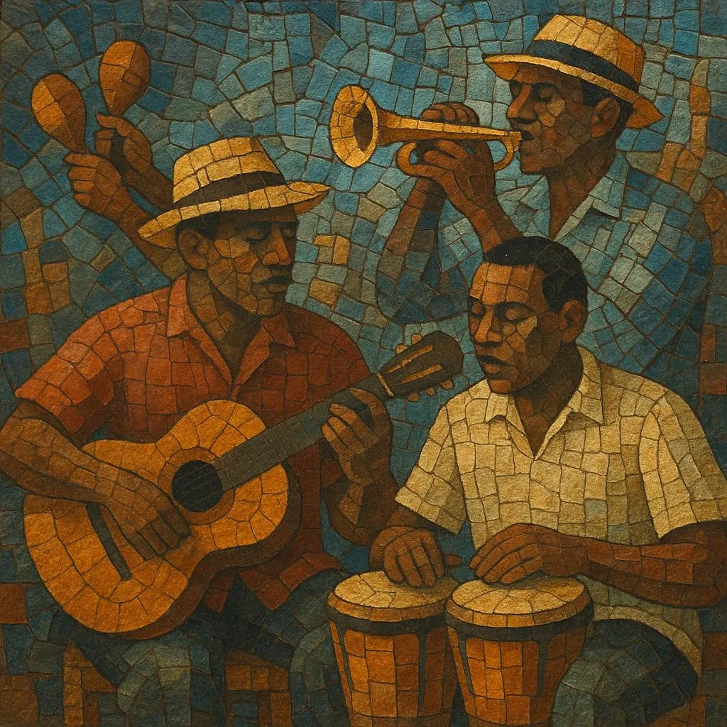 It blends Spanish-derived string and song forms with Afro-Cuban rhythms, organizing the music around the clave pattern, the tres guitar’s guajeos (ostinatos), and a two-part form (verso and montuno) that moves from narrative song to call-and-response coro-pregón over a propulsive groove.