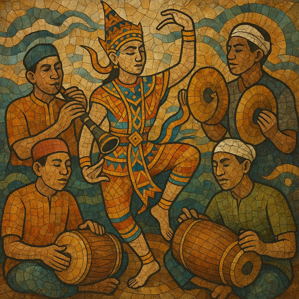 Southern Thai music arose at the crossroads of maritime trade routes linking Siam, the Malay world, and the wider Indian Ocean. By the 1700s, the peninsula’s courtly and folk traditions had coalesced into distinct performance genres, notably Nora/Manora (a dance-drama tied to local Buddhist and animist ritual) and Nang Talung (shadow puppetry with sung dialogue). Muslim-majority coastal districts fostered Malay-derived social dance music (Rong-Ngeng/Ronggeng), reflecting long-standing cultural exchange with Kelantan, Terengganu, and the Straits.