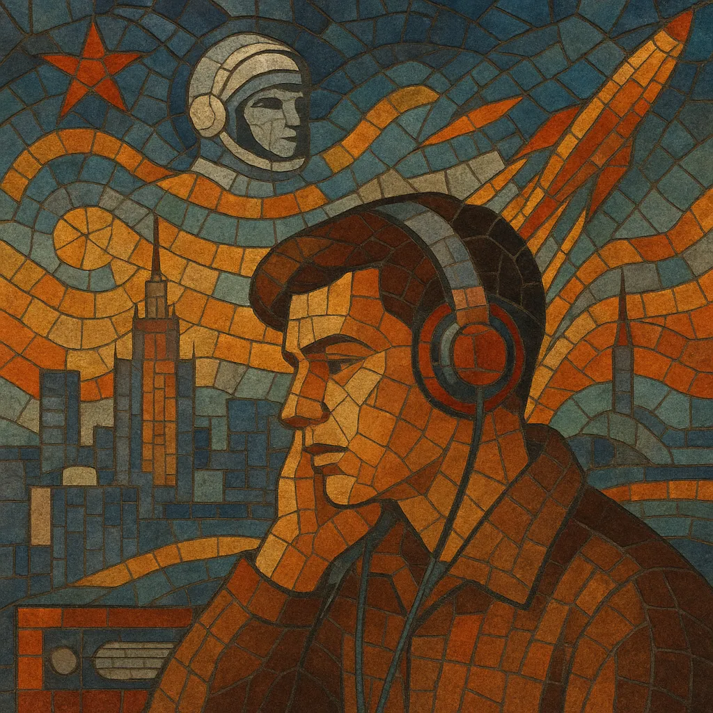 Typical tracks feature tape hiss, radio static, and excerpts from newsreels, educational films, or cosmonaut broadcasts, set against synth pads, simple drum programming, and minor-key progressions. The result is a bittersweet, dreamy sound that feels both distant and familiar—reconstructing a “lost future” through the sonic memory of the USSR and post-Soviet popular culture.
