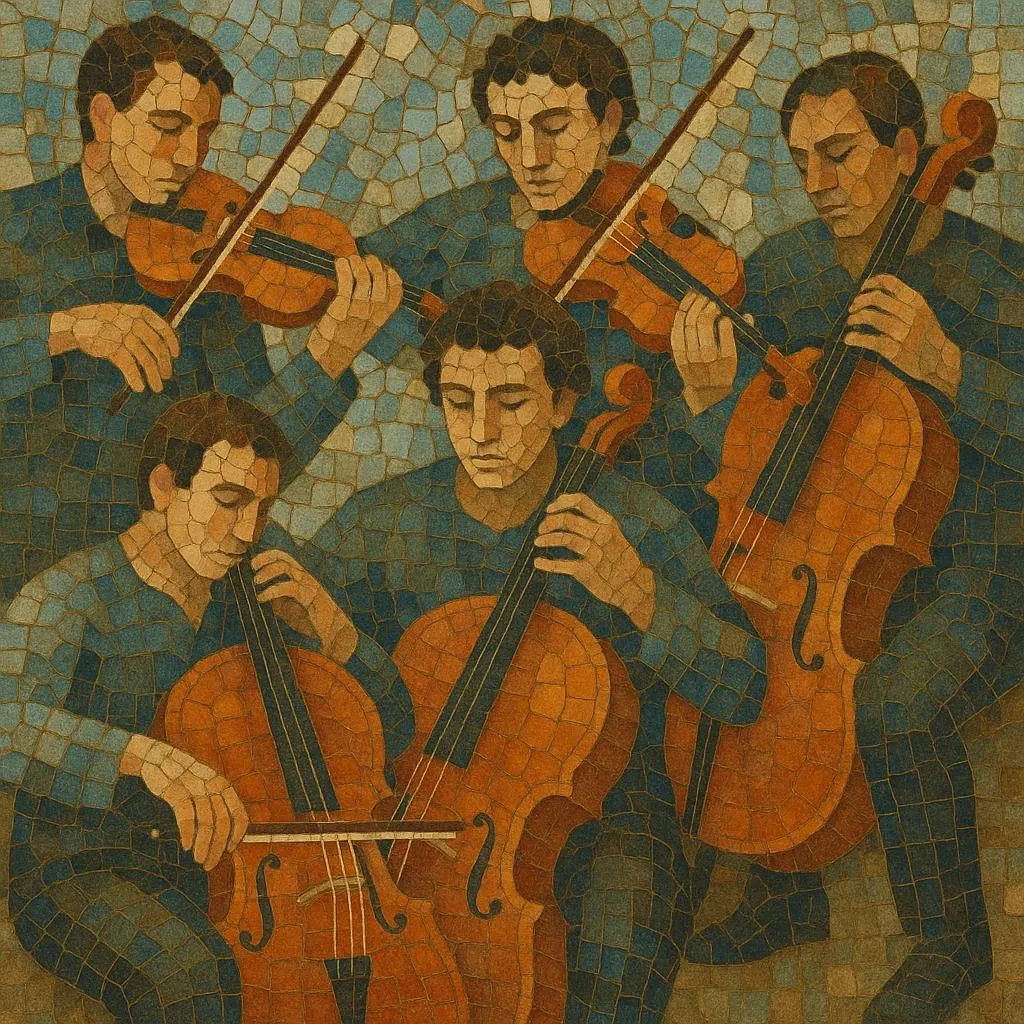 The string quintet emerged in the later 18th century as an outgrowth of the Classical string quartet and broader chamber-music practices. Luigi Boccherini pioneered quintets—often with two cellos—exploiting his virtuosity as a cellist to deepen bass resonance and lyrical writing. Almost simultaneously, Viennese classicism shaped the genre through works that favored two violas (enhancing inner-part dialogue and warmth).