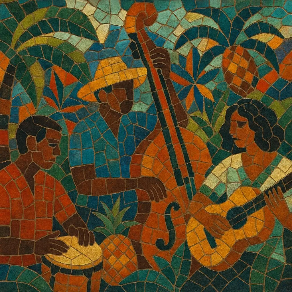 Its sound palette balances hand percussion, tumbao basslines, and vintage organs or guitars with synthesizers, samplers, and lo‑fi/dub processing (tape saturation, spring reverb, delay). Vocals often switch between intimate indie delivery and call‑and‑response coros, with lyrics that blend urban life, identity, and tropical surrealism. The result is dance‑forward yet art‑leaning music that feels simultaneously rootsy and futurist.