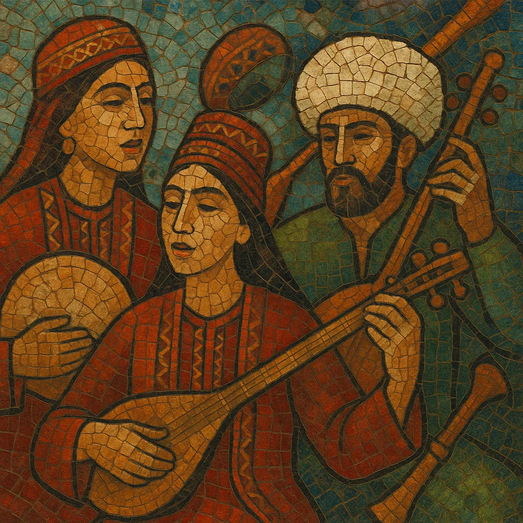 Turkmen music coalesced with the westward movement and settlement of Oghuz Turkic tribes across Central Asia in the 1000s. Oral-epic performance by bagshy (bards) accompanied on dutar became a cornerstone of communal life, preserving history, ethics, and identity through story-songs and heroic cycles.