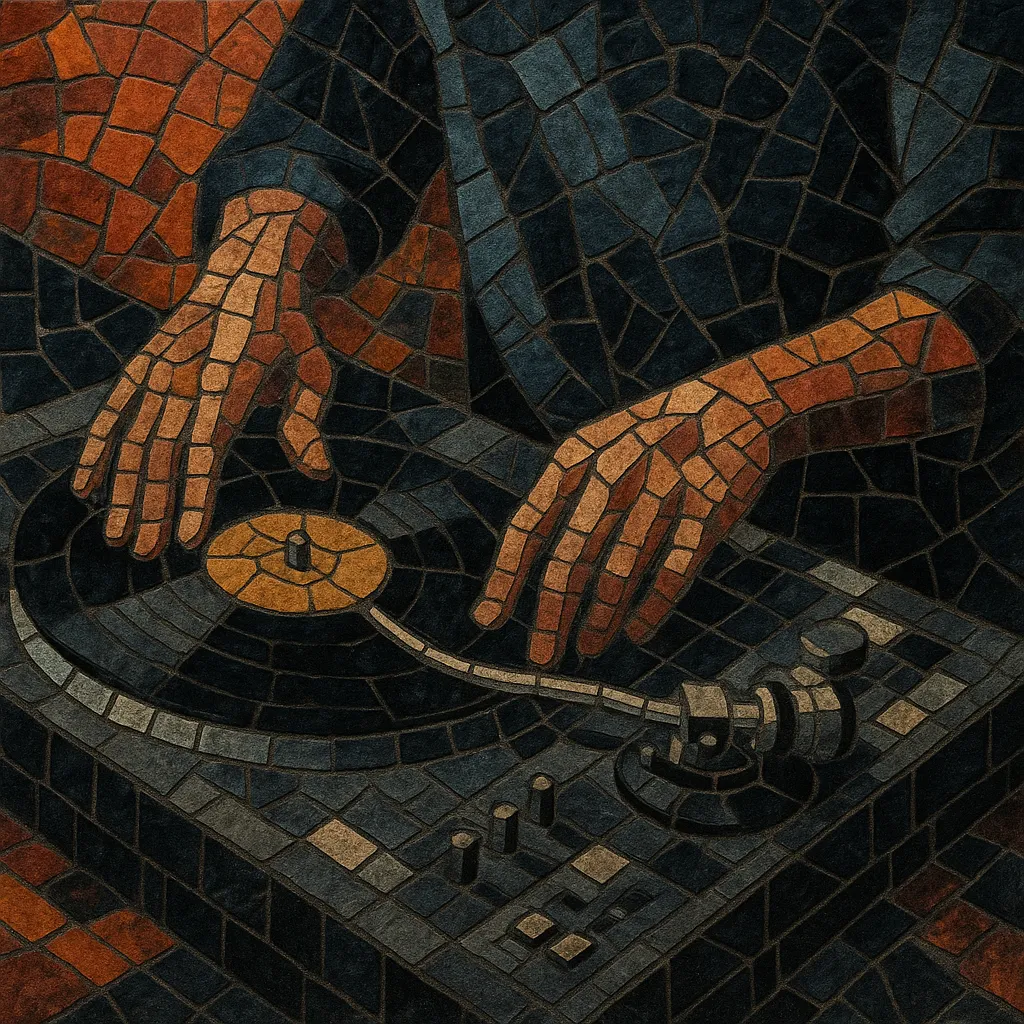 Artists manipulate records, cartridges, and the mechanics of the deck to create textures, rhythms, drones, and collages. Techniques include live mixing of disparate records, exploiting locked grooves, variable-speed playback, back-cueing, needle drops, surface-noise extraction, and "prepared" turntables using objects (tape, paper, coins, rubber bands) placed on records or the platter. While it overlaps with hip‑hop DJ techniques, turntable music is typically less beat‑matching oriented and more focused on sound exploration, improvisation, and composition in the spirit of avant‑garde, sound art, and musique concrète.