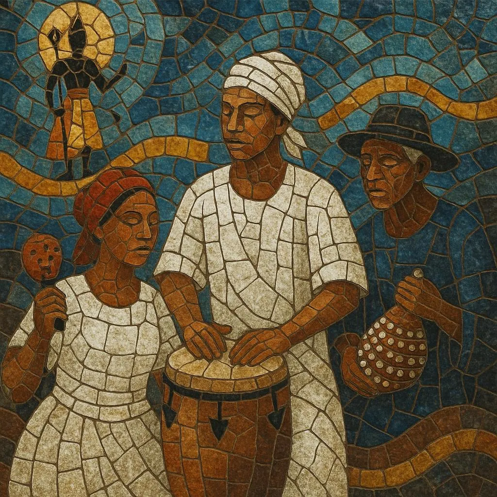 Musically, Umbanda blends West/Central African drumming logics with Portuguese‑language sacred poetry and elements from Catholic hymnody and Kardecist Spiritism. Texts are short, repetitive, and functional: they open works, salute entities, cleanse space, and guide spirit incorporation. Tempos range from meditative to danceable, and harmony (when guitars or keyboards are used) stays simple so the ritual pulse and voices remain paramount.