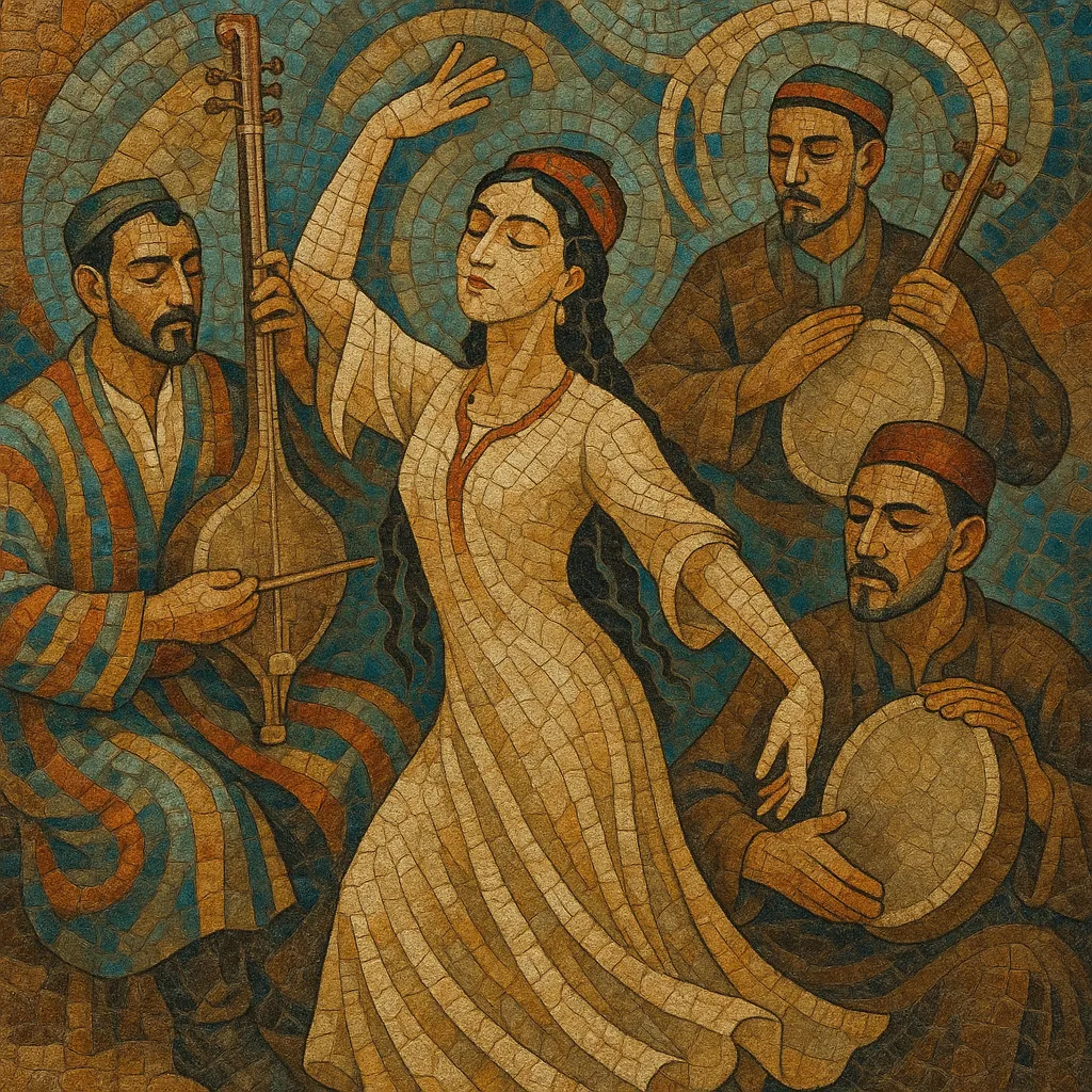 Each muqam cycle traditionally moves through sections akin to chong naghma (large songs), dastan (narrative/lyric episodes), and mäshräp (lively dance sets), balancing contemplative spirituality with communal festivity.
