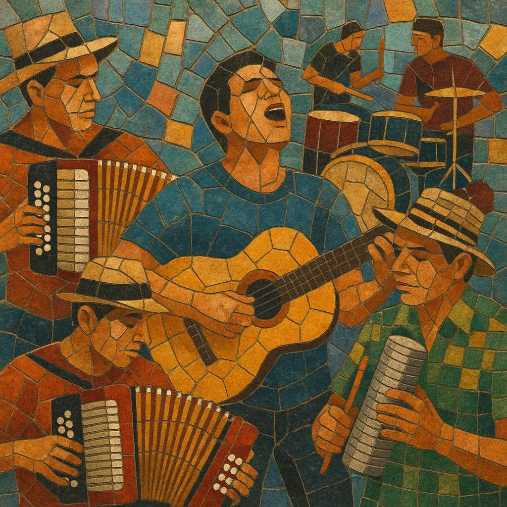 Vallenato moderno is the contemporary, pop-forward evolution of Colombia’s traditional vallenato. It keeps the genre’s core—diatonic button accordion, caja vallenata, and guacharaca—while expanding the palette with drum set, electric bass, keyboards/synths, and studio production techniques.