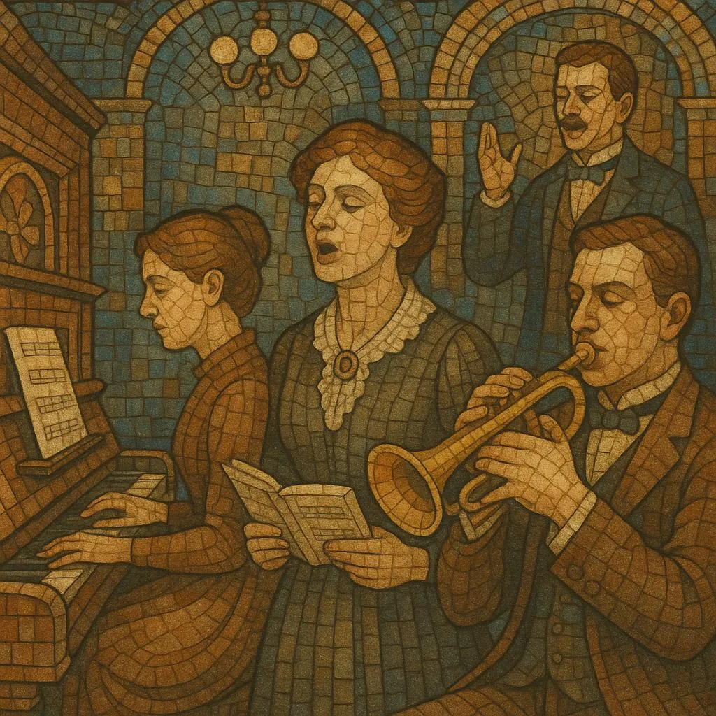 The Victorian era begins amid the late‑Romantic expansion of European art music. In Britain, a rapidly growing middle class acquires pianos, cheap sheet music, and music literacy, fueling a domestic repertory of parlour ballads and strophic art songs. Anglican chant and hymnody thrive in churches, supported by organ building and the publication of influential hymnals (e.g., Hymns Ancient and Modern, 1861). Simultaneously, industrial towns form brass bands and choral societies, turning music into a communal pastime and civic pride.