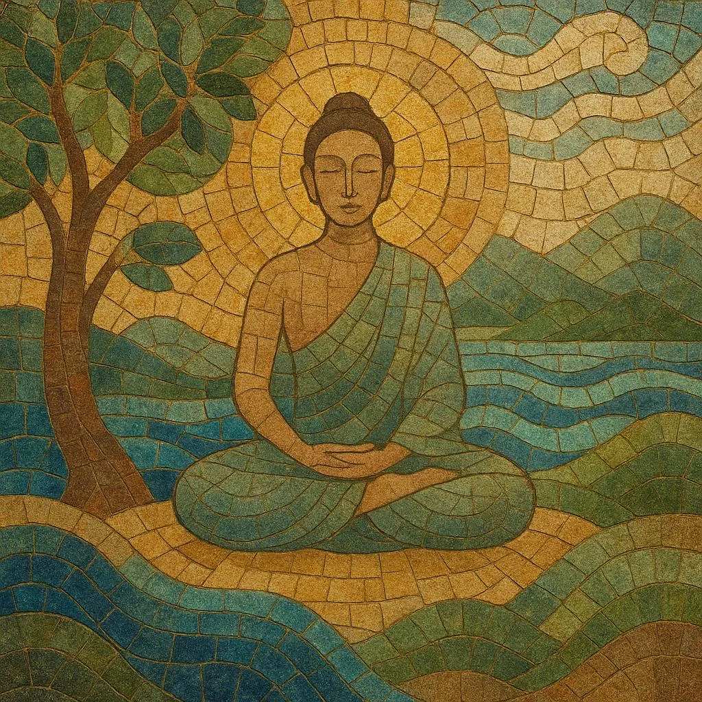 It blends ambient and new age aesthetics with timbres, scales, and instruments drawn from global ("world") traditions—such as Tibetan singing bowls, tanpura drones, shakuhachi, bansuri, kora, duduk, frame drums, and gongs—often alongside soft synthesizers, sustained pads, and nature recordings. Tempos are very slow or free-time; harmonic motion is minimal; textures evolve gradually to support relaxed attention and steady breathing.