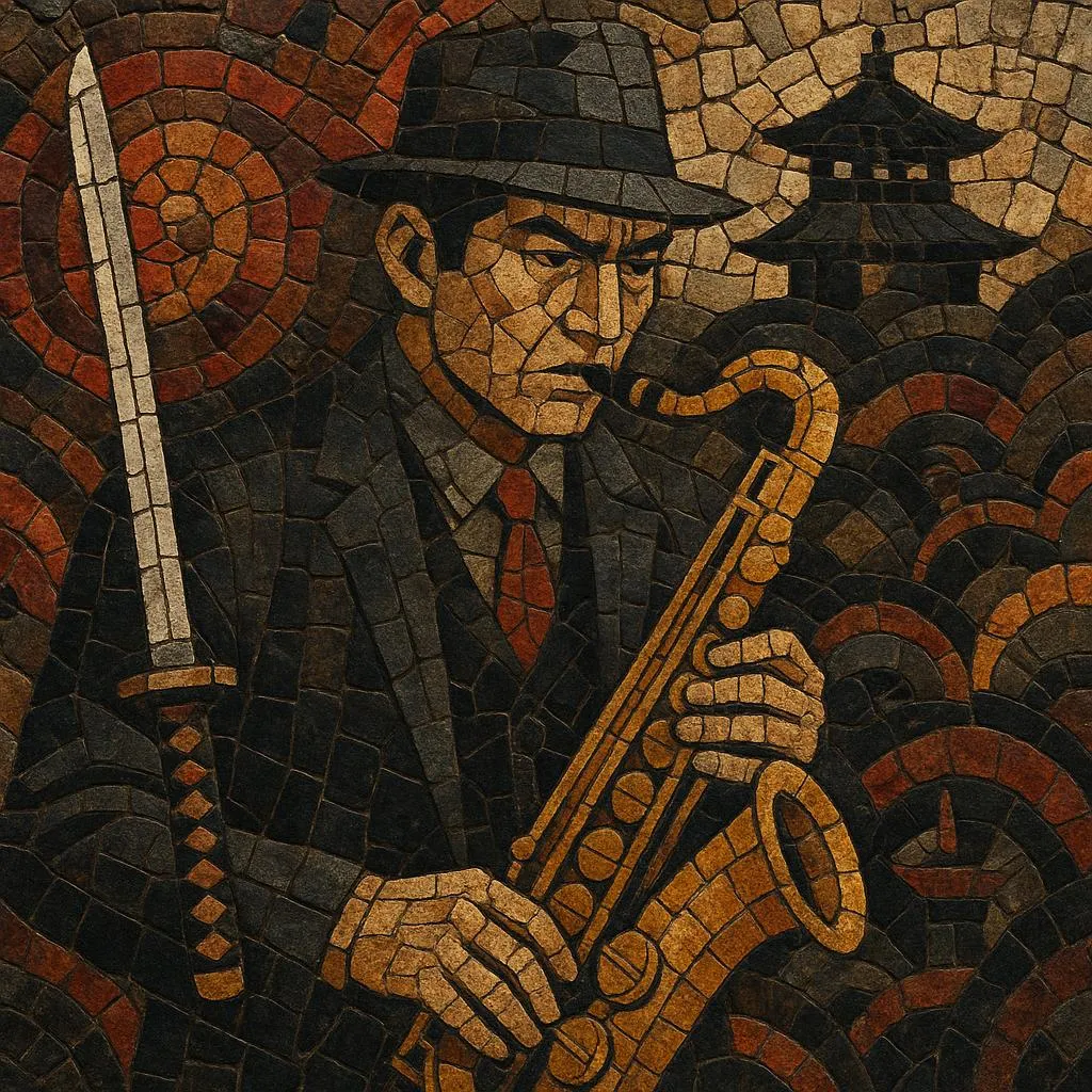 “Chivalry films” idealized code‑bound gangsters. Scores combined lounge jazz, bluesy progressions, and eleki/surf guitars (spring reverb tremolo, walking bass, brushes). Traditional timbres—shakuhachi, shamisen—signaled clan ritual and ancestral duty, intertwining Japanese modality with ii–V–I minor turns.