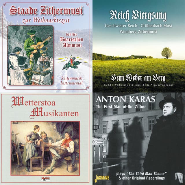 Zither (as a genre) refers to the traditional Central European practice of composing and performing music centered on the concert and Alpine zither family, especially in Austria and southern Germany. The sound is defined by a fretted melody section picked with a thumb-ring plectrum and a bed of open accompaniment strings plucked by the fingers, yielding a bright, bell-like melody over resonant drones and arpeggios.